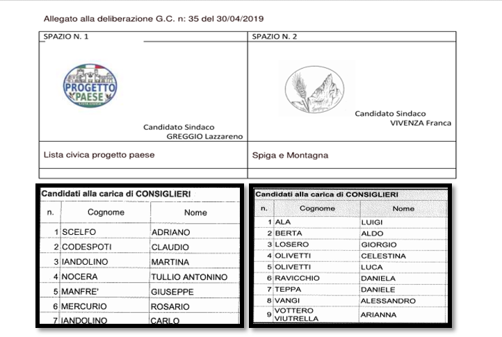 Elenco dei nominativi dei candidati Sindaco e delle liste di candidati per il Consiglio Comunale secondo l’ordine stabilito dalla Sottocommissione Elettorale Circondariale di Ciriè a seguito di sorteggio e relativo programma: