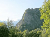 Le prime 2 lunghezze si svolgono su di un avancorpo ai piedi della rocca, placca a grossi buchi.
